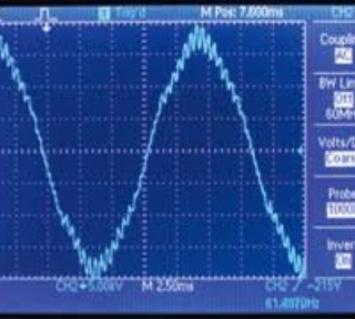 With the proliferation of electronic ballasts in fluorescent lighting, variable frequency drives for motors, “efficient” power supplies for computers and monitors, etc., we no longer enjoy 60 Hz sine-wave power from the utility. If you look at the waveform of your incoming power (need a special instrument for this) you would most likely see a wave form that looked more like the pictures on the left, instead of the picture at the right, which is what we are all suppose to be getting from the electric utility. The problem is that each year, more and more of the equipment we install in our facilities actually distorts the power and this can have a disruptive affect on both your operations and your utility bill, causing you to pay more than you should. In the pictures below, the first and second pictures show the kinds of distortion we typically see at the utility/facility power connection while the third picture shows a normal 60 Hz sine-wave coming from the utility.